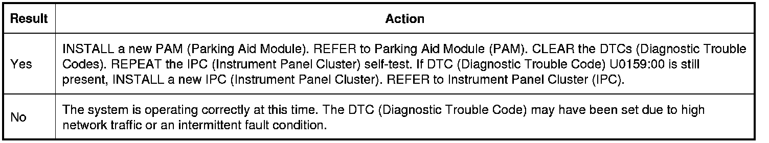 Is DTC (Diagnostic Trouble Code) U0159:00 still present?