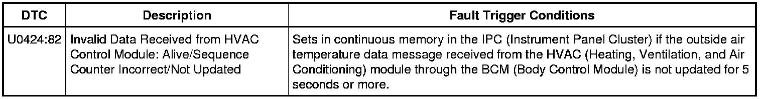 IPC (Instrument Panel Cluster) DTC Fault Trigger Conditions