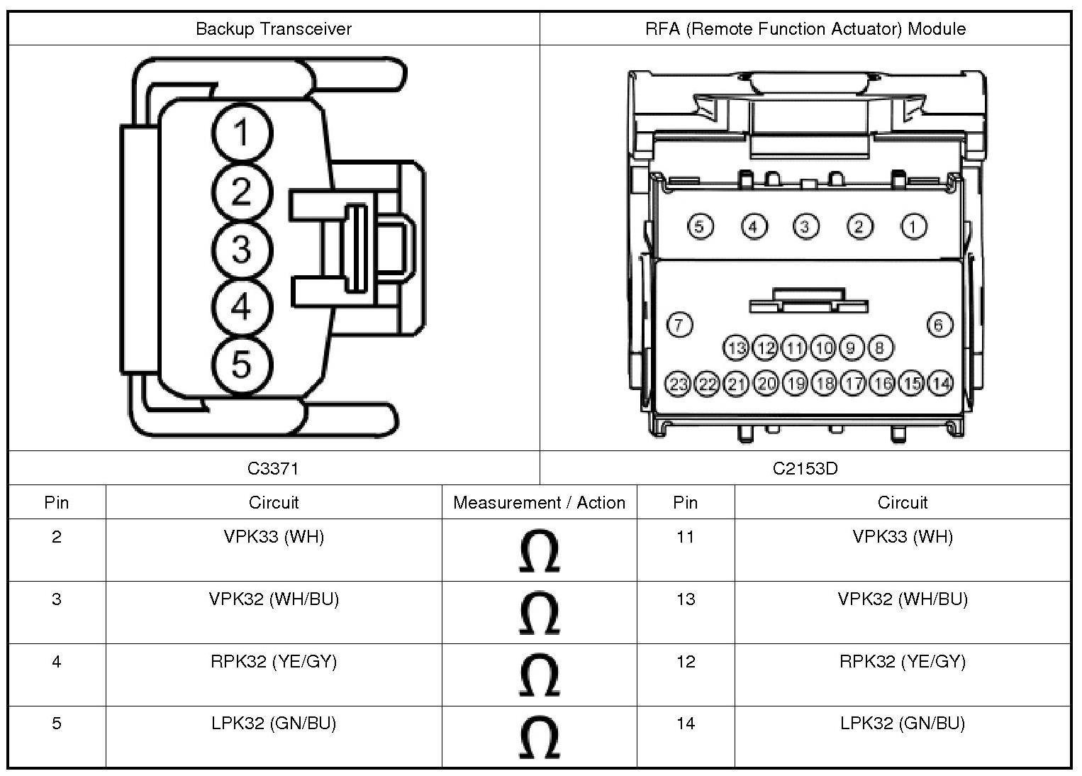 1. Disconnect and inspect all the RFA (Remote Function Actuator) module connectors.