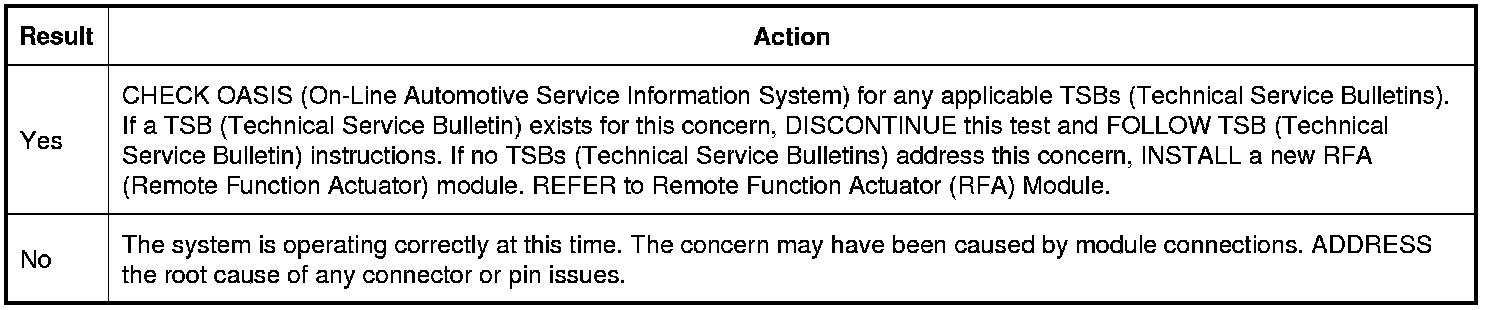 5. CHECK FOR CORRECT RFA (Remote Function Actuator) MODULE OPERATION