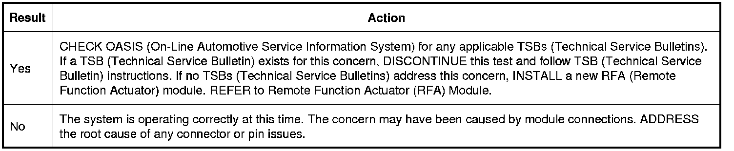 7. CHECK FOR CORRECT RFA (Remote Function Actuator) MODULE OPERATION