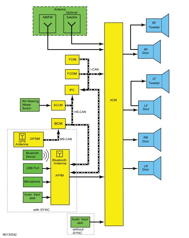 For vehicles without SYNC(R) , audio signals are sent from the audio input jack to the ACM (Audio Control Module).