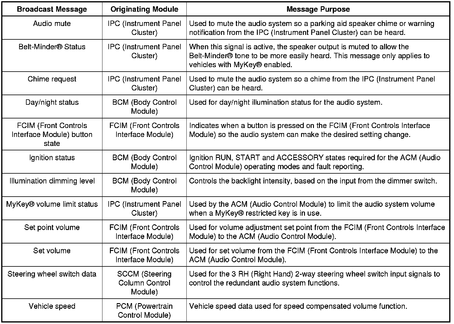 Module Network Input Messages - ACM (Audio Control Module)