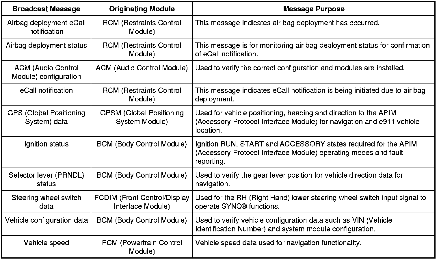 Module Network Input Messages - APIM (Accessory Protocol Interface Module)