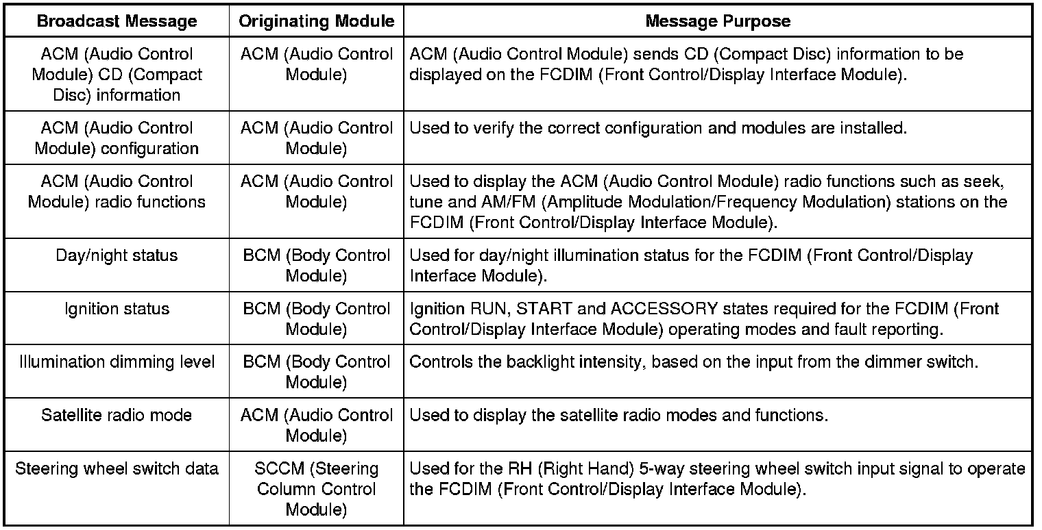 Module Network Input Messages - FCDIM (Front Control/Display Interface Module)