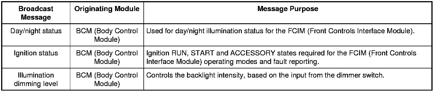 Module Network Input Messages - FCIM (Front Controls Interface Module)