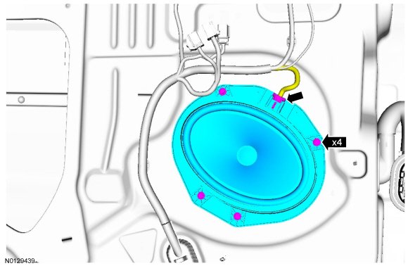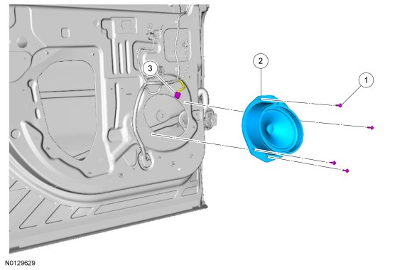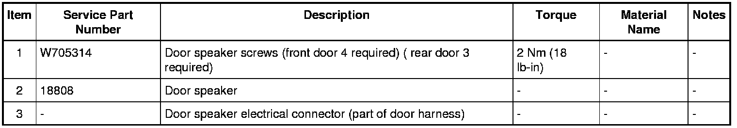 2. Remove the 4 screws (front door) or 3 screws (rear door) and the door speaker.