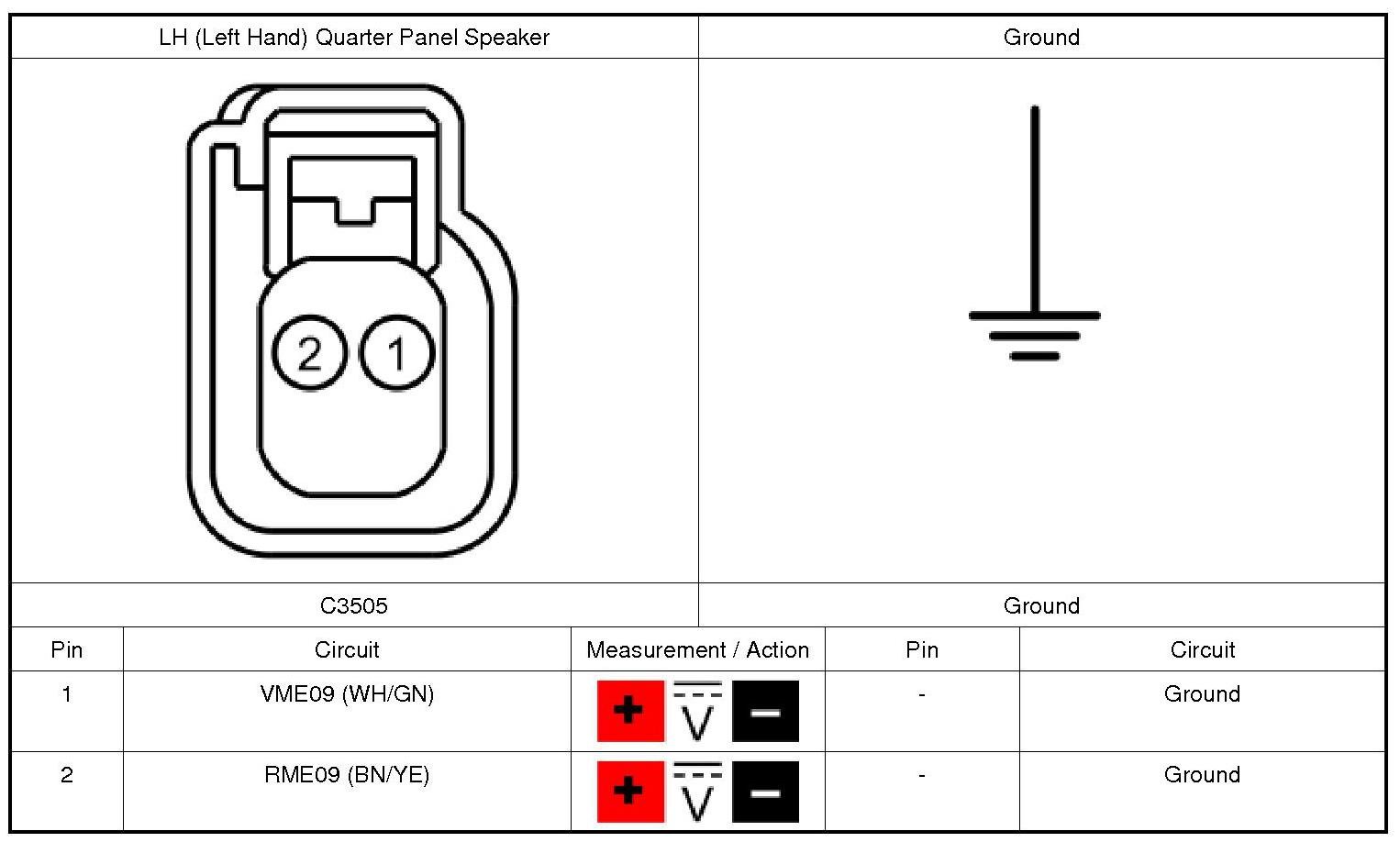 3. CHECK THE AUDIO CIRCUITS TO THE LH (Left Hand) QUARTER PANEL SPEAKER FOR A SHORT TO GROUND