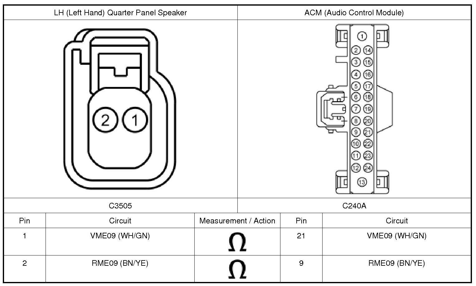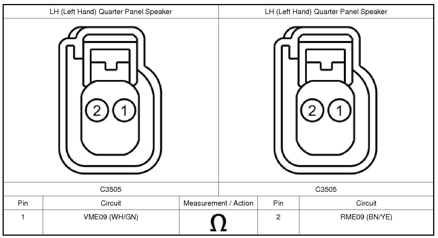 5. CHECK THE AUDIO CIRCUITS TO THE LH (Left Hand) QUARTER PANEL SPEAKER FOR AN OPEN