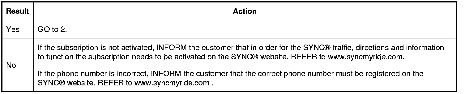 Verify that the customer has an active subscription and the correct phone number that is registered on the SYNC(R) website. REFER to www.syncmyride.com.