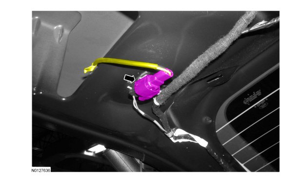 - Remove the rubber grommet and route the electrical connector out of the liftgate.