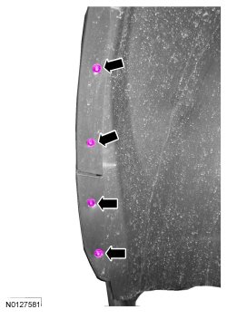 6. Install the 3 fender moulding pin-type retainers at the rear of the moulding.