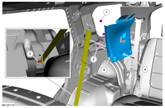 1. Remove the quarter trim panel. REFER to Quarter Trim Panel - Without Inflatable Safety Belts .