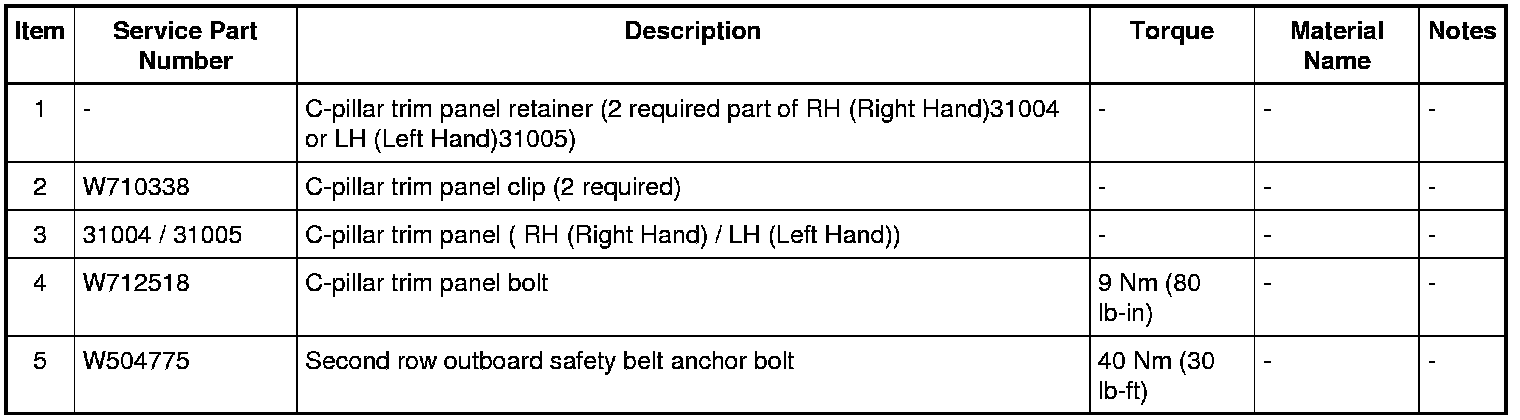 1. Feed the second row outboard safety belt through the C-pillar trim panel and install the trim panel on the body.