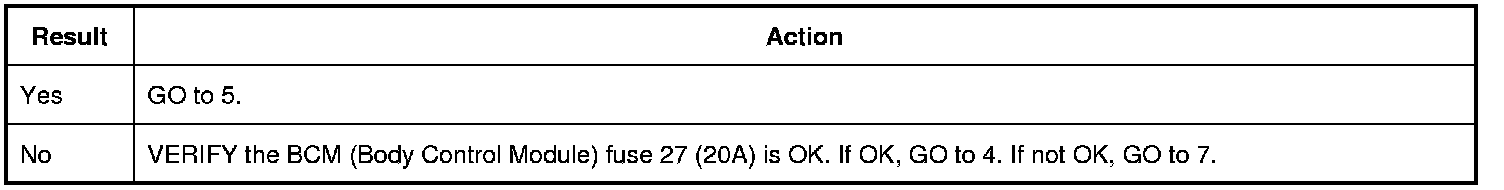 Install a new BCM (Body Control Module) fuse 27 (20A).