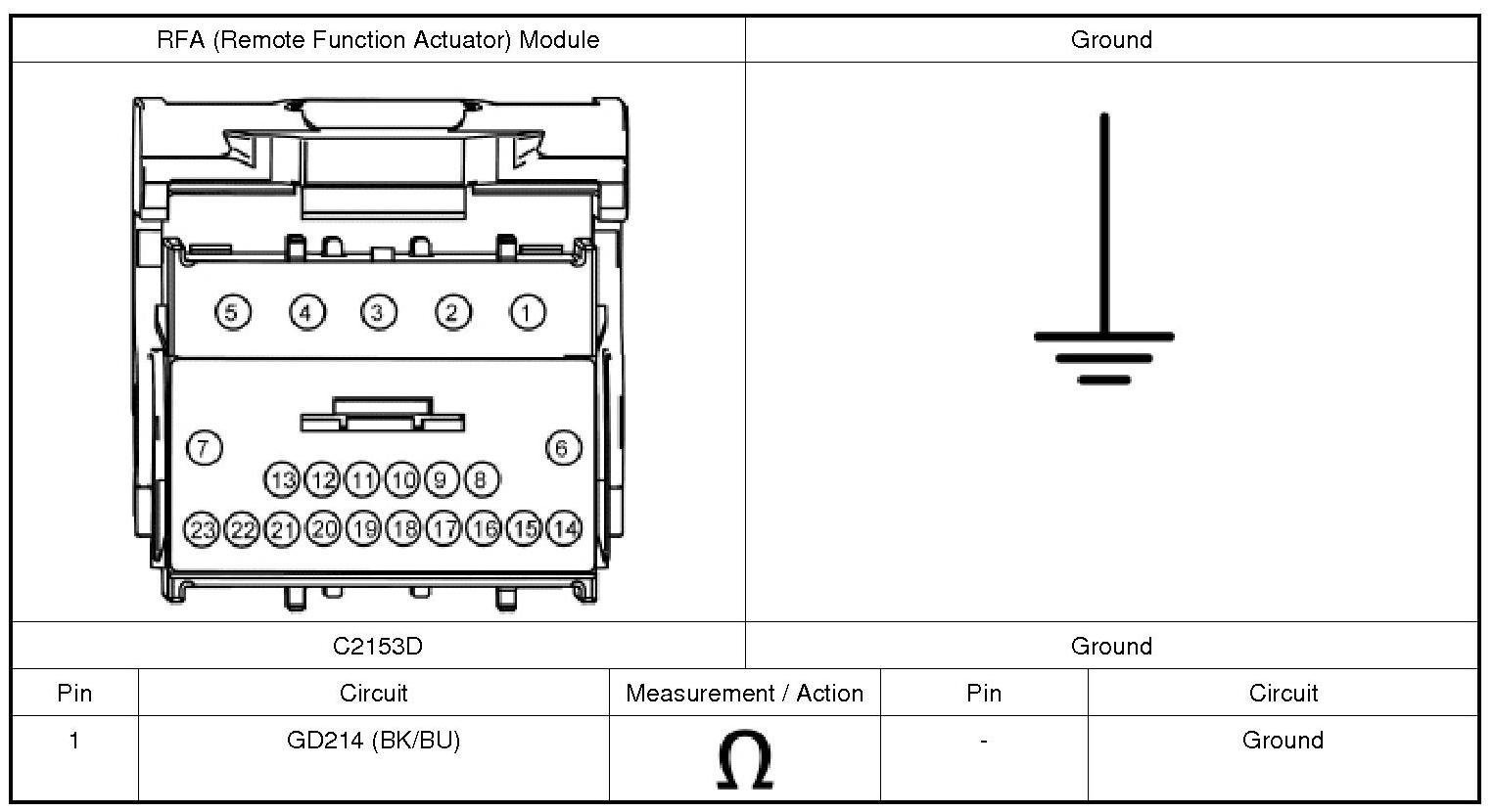 1. Disconnect: RFA (Remote Function Actuator) Module C2153D.