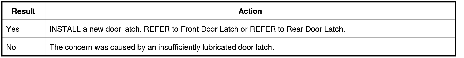 1. Lubricate the door latch. REFER to Latch Lubrication .