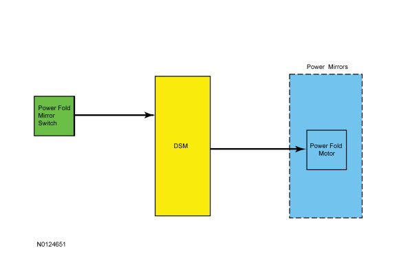 The DSM (Driver Seat Module) controls power fold mirror operation but does not use memory mirror potentiometer information for operation of the power fold mirrors.