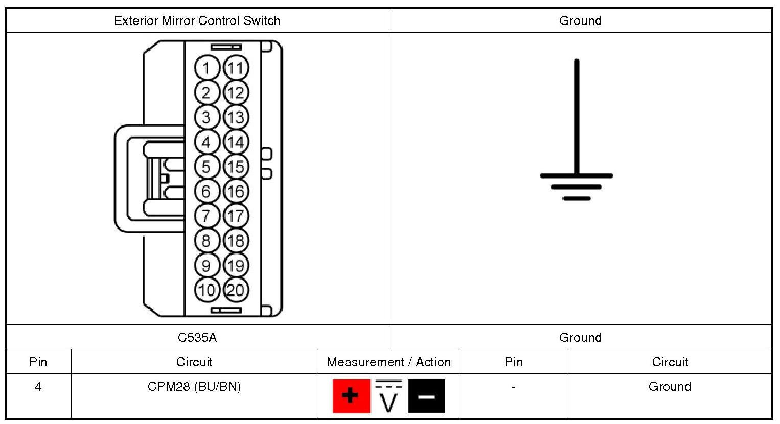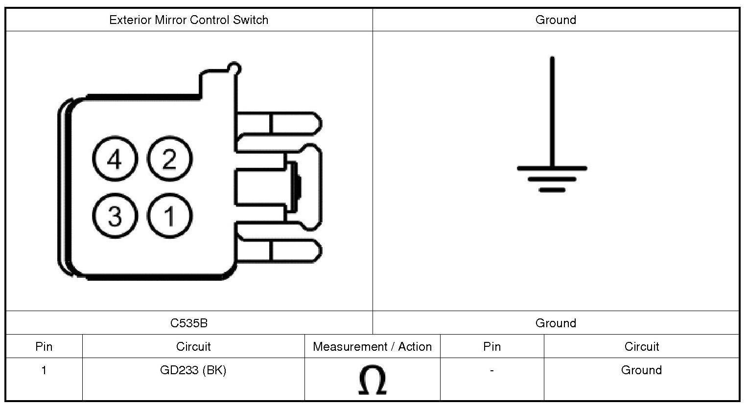 3. Disconnect: Exterior Mirror Control Switch C535A (base mirrors).