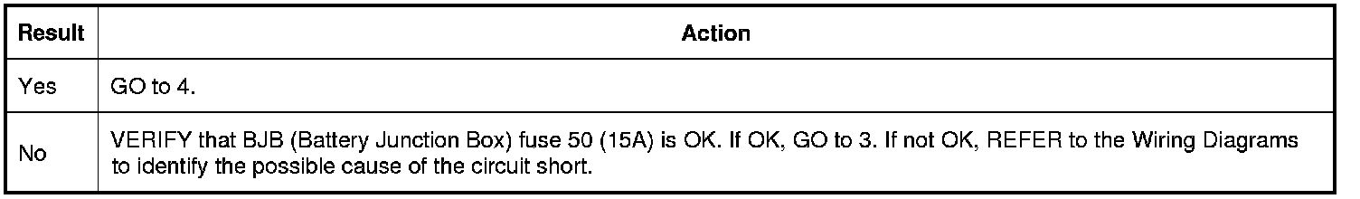 1. Verify BJB (Battery Junction Box) fuse 50 (15A) is installed.