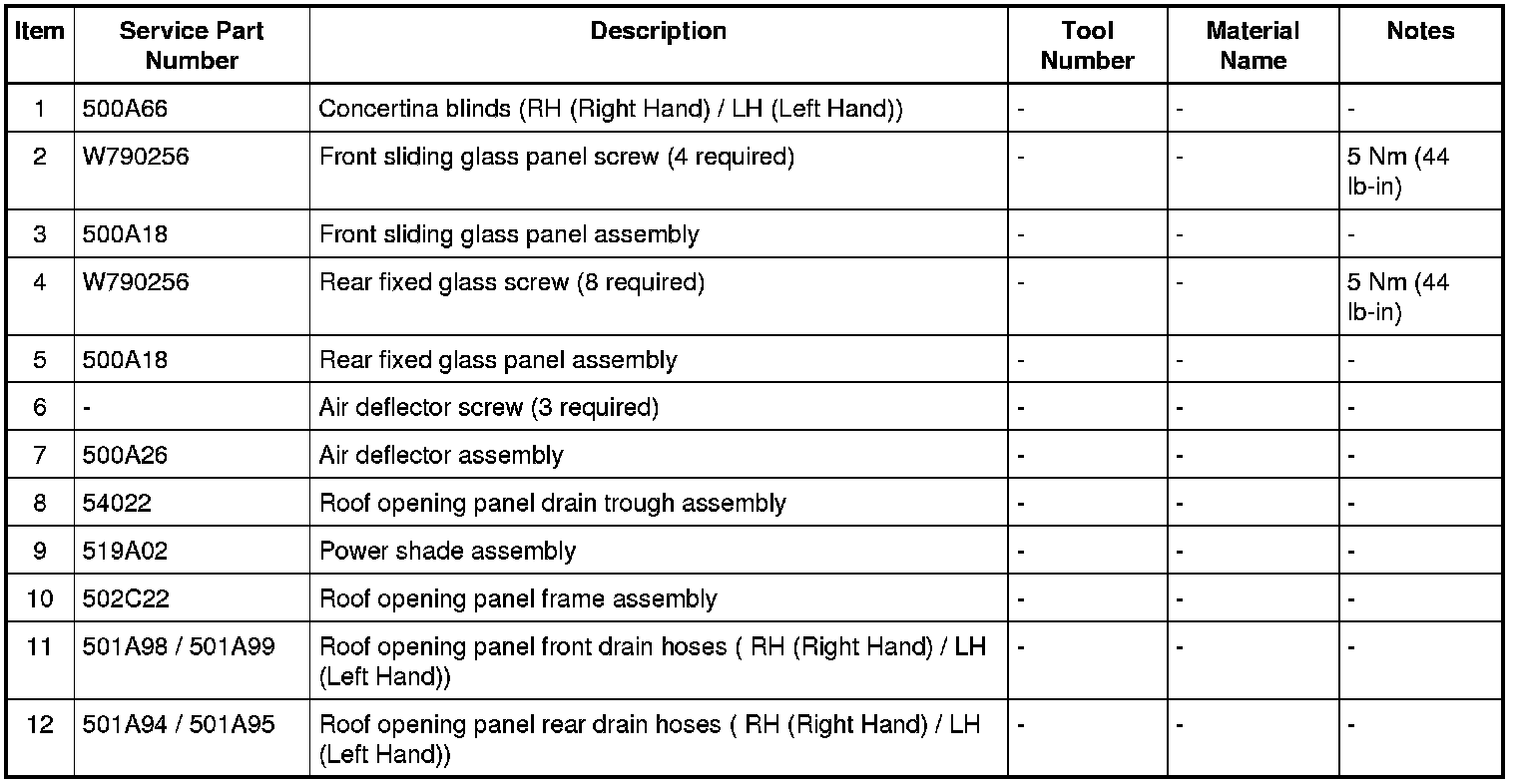 Roof Opening Panel - Exploded View