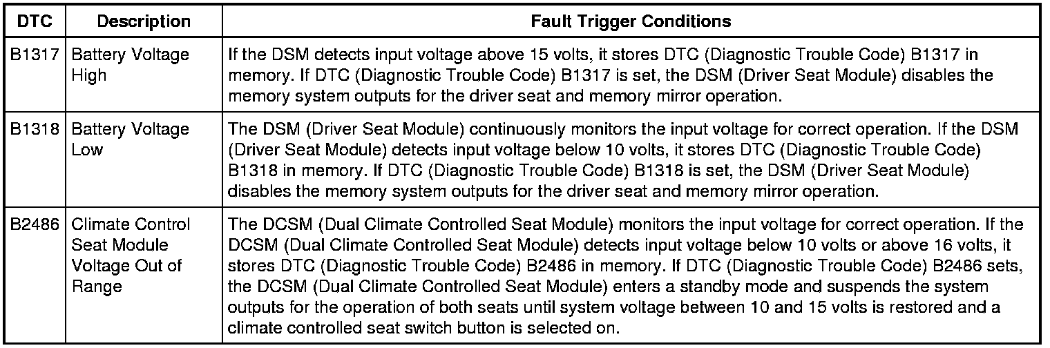 1. NOTE: DTC (Diagnostic Trouble Code) B1317, B1318, B2486, B1676, U3003:16 or U3003:17 can be set if the vehicle has been recently jump started, the battery has been recently charged or the battery has been discharged. The battery may become discharged due to excessive load(s) on the charging system from aftermarket accessories or if the battery has been left unattended with the accessories on.