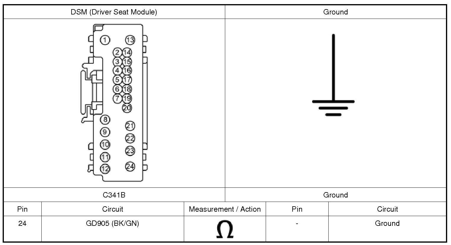 5. CHECK THE DSM (Driver Seat Module) GROUND CIRCUITS FOR AN OPEN