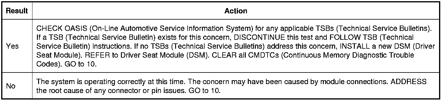 6. CHECK FOR CORRECT DSM (Driver Seat Module) OPERATION