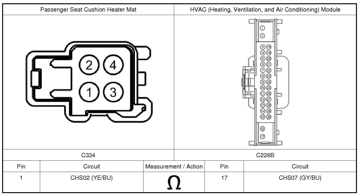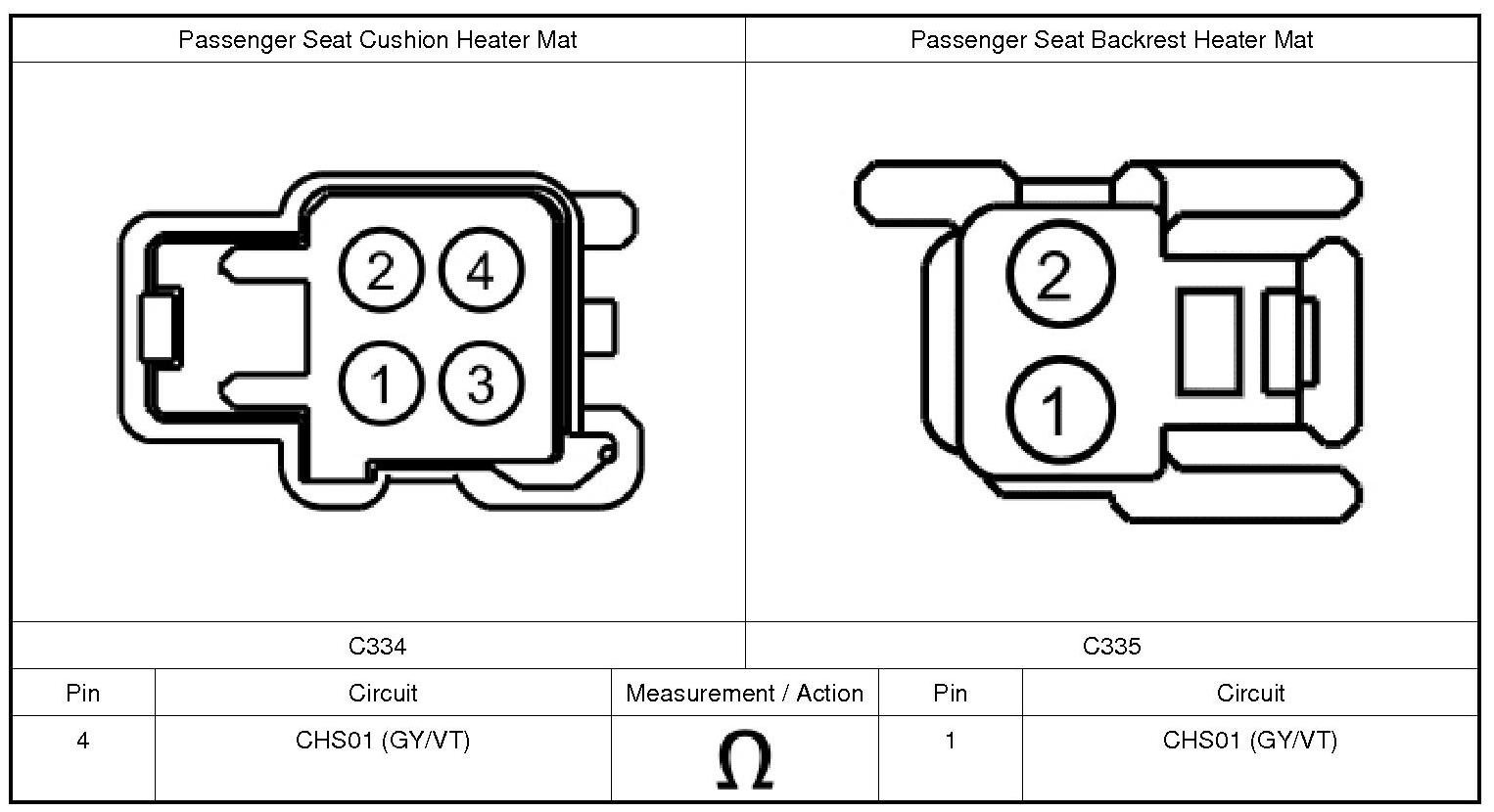 3. Connect: Passenger Seat Cushion Heater Mat C334 (if previously disconnected).