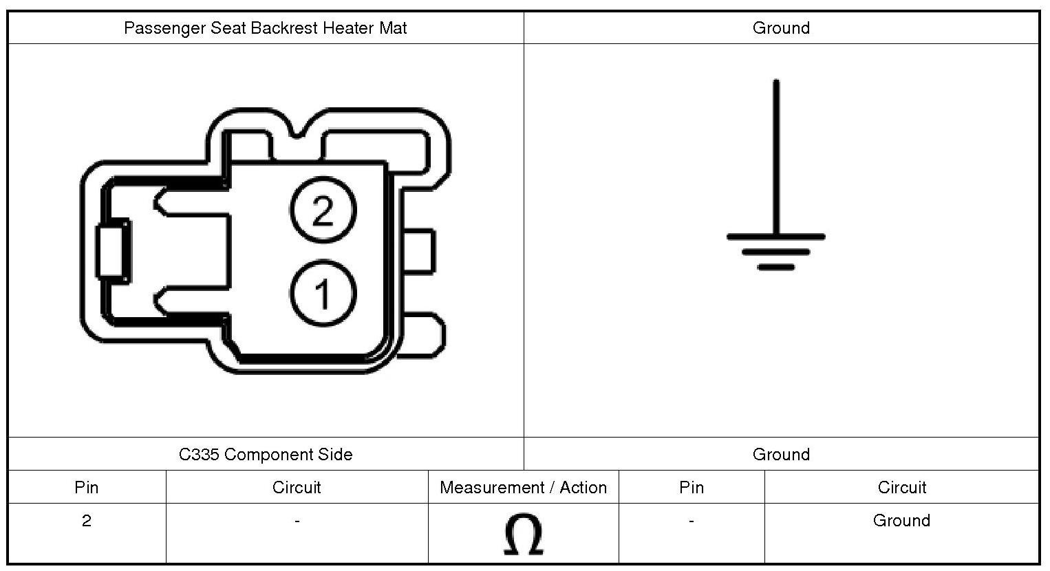 1. Disconnect: Passenger Seat Backrest Heater Mat C335.
