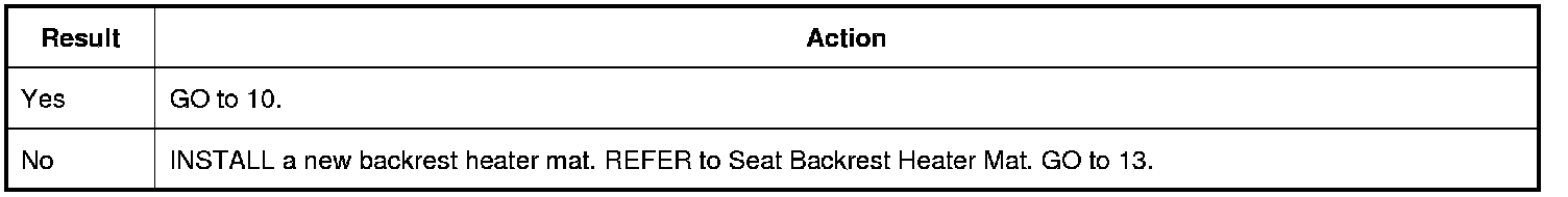 9. CHECK THE BACKREST HEATED SEAT MAT FOR AN OPEN OR SHORT TO GROUND