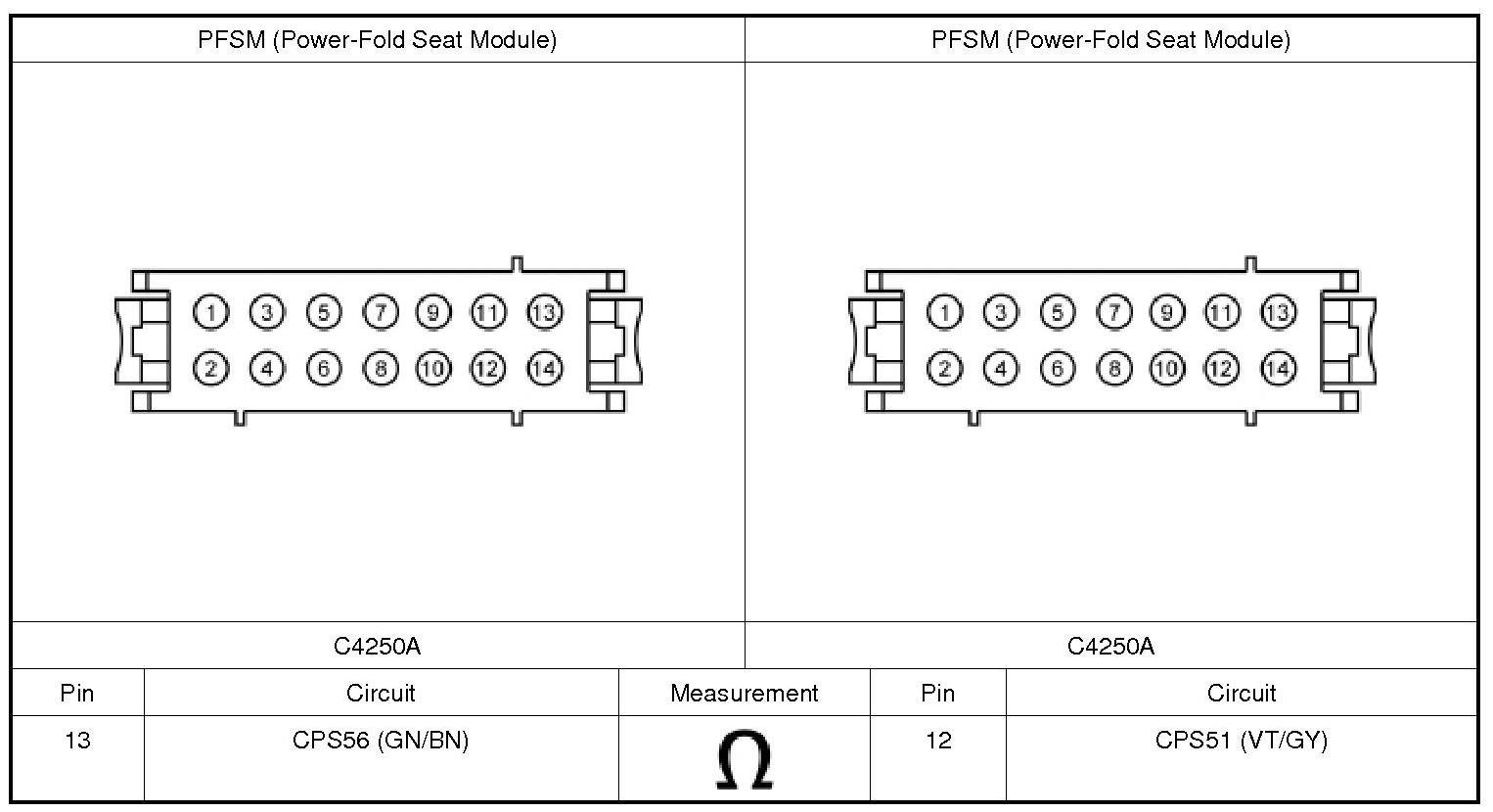 1. Connect: PFSM (Power-Fold Seat Module) C4250A.