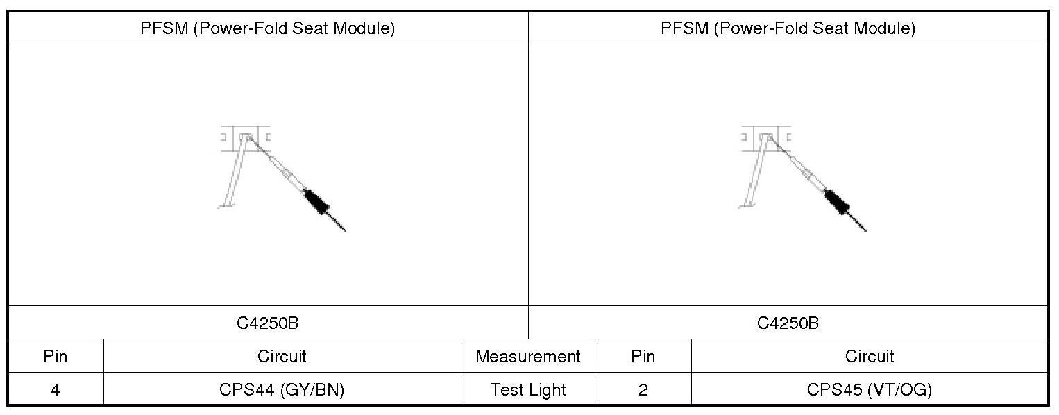 1. CHECK THE PFSM (Power-Fold Seat Module) FOR OUTPUT VOLTAGE TO THE POWER-FOLD SEAT MOTOR
