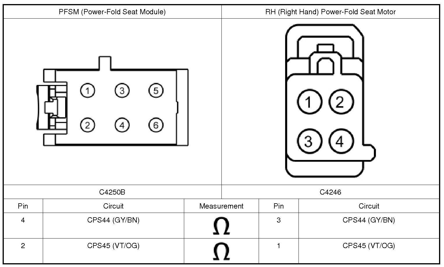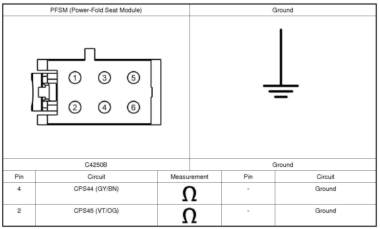 1. Connect: PFSM (Power-Fold Seat Module) C4250B.