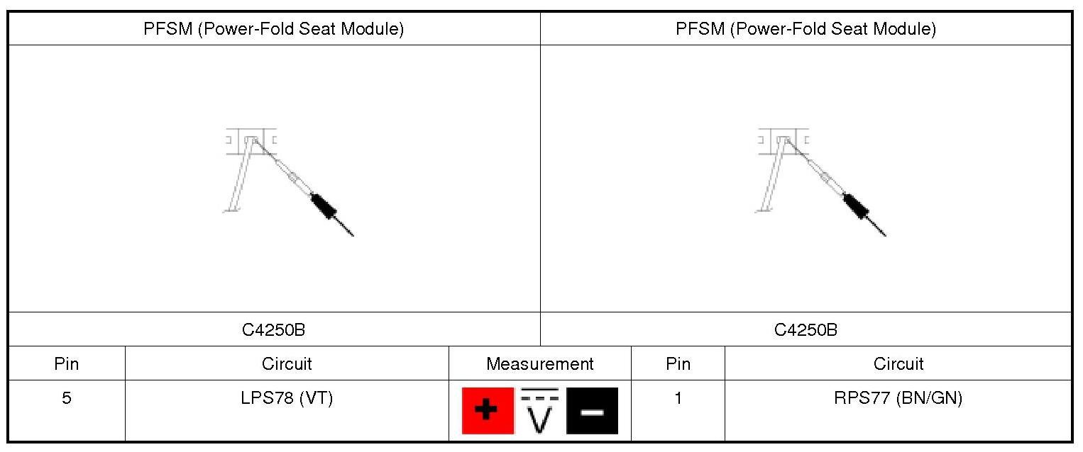 6. CHECK THE PFSM (Power-Fold Seat Module) FOR OUTPUT VOLTAGE TO THE FOLD SENSOR
