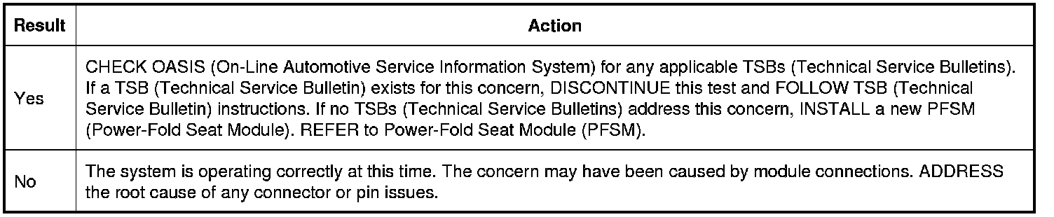 1. Access the PFSM (Power-Fold Seat Module). To access the PFSM (Power-Fold Seat Module), REFER to Power-Fold Seat Module (PFSM) .