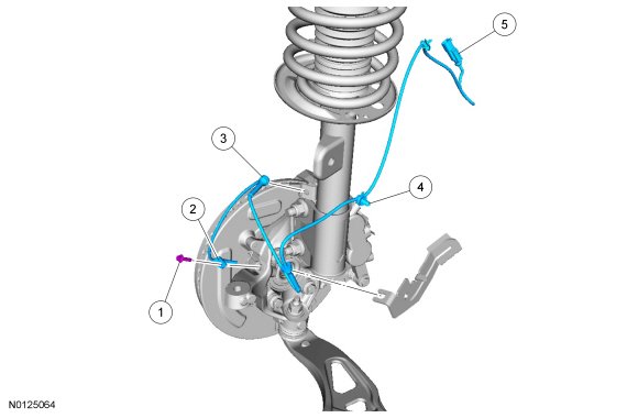 1. Position the front wheel speed sensor and install the front wheel speed sensor bolt.