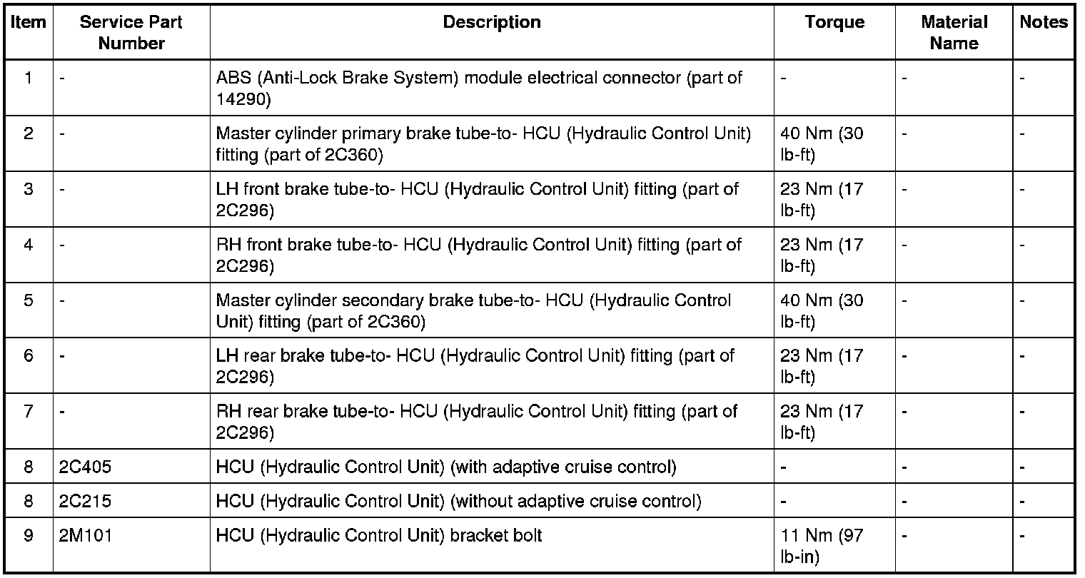 - Tighten the remaining brake tube fittings to 23 Nm (17 lb-ft).