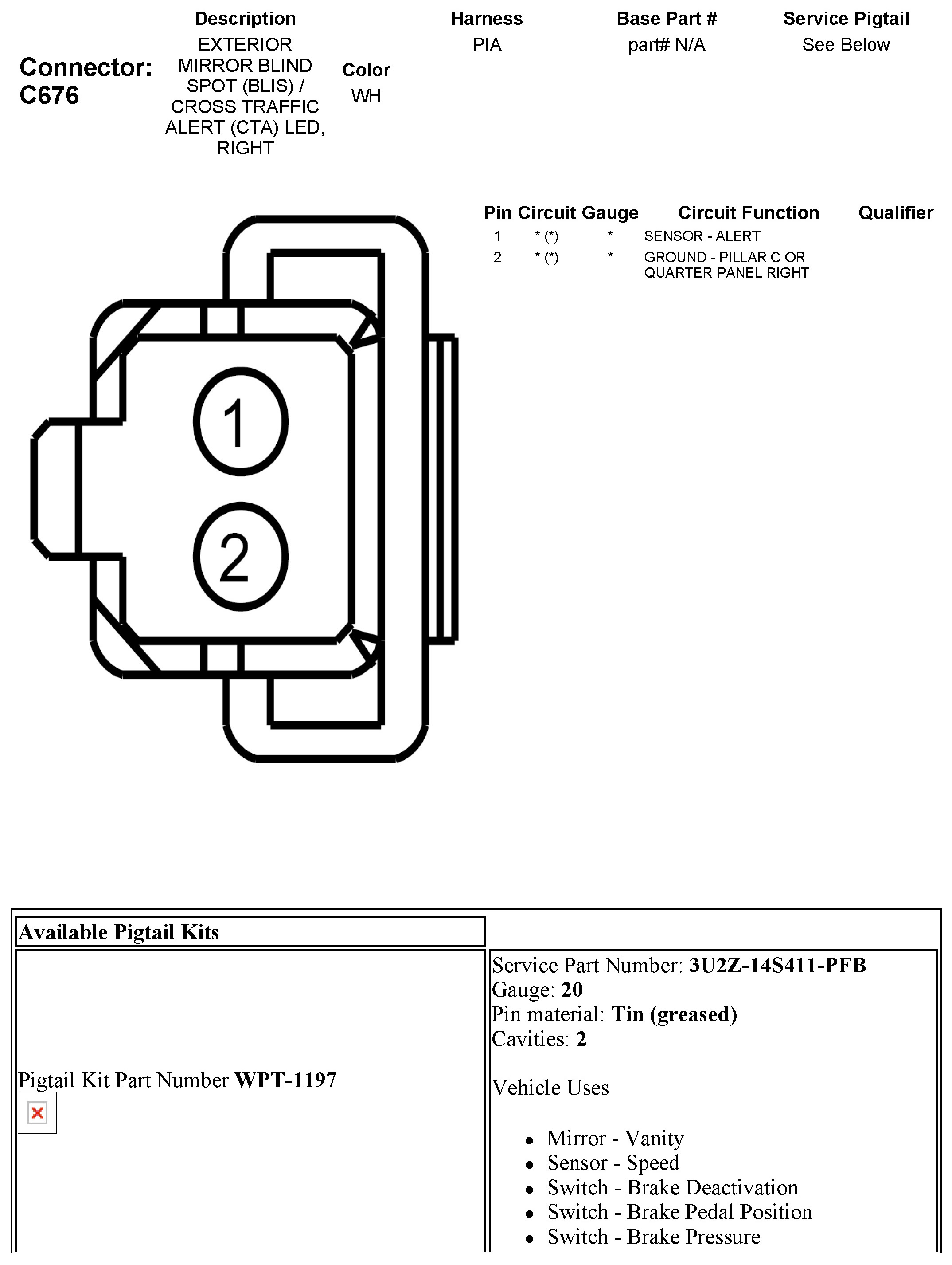 C676 Exterior Mirror Blind Spot (BLIS) / Cross Traffic Alert (CTA) LED, Right