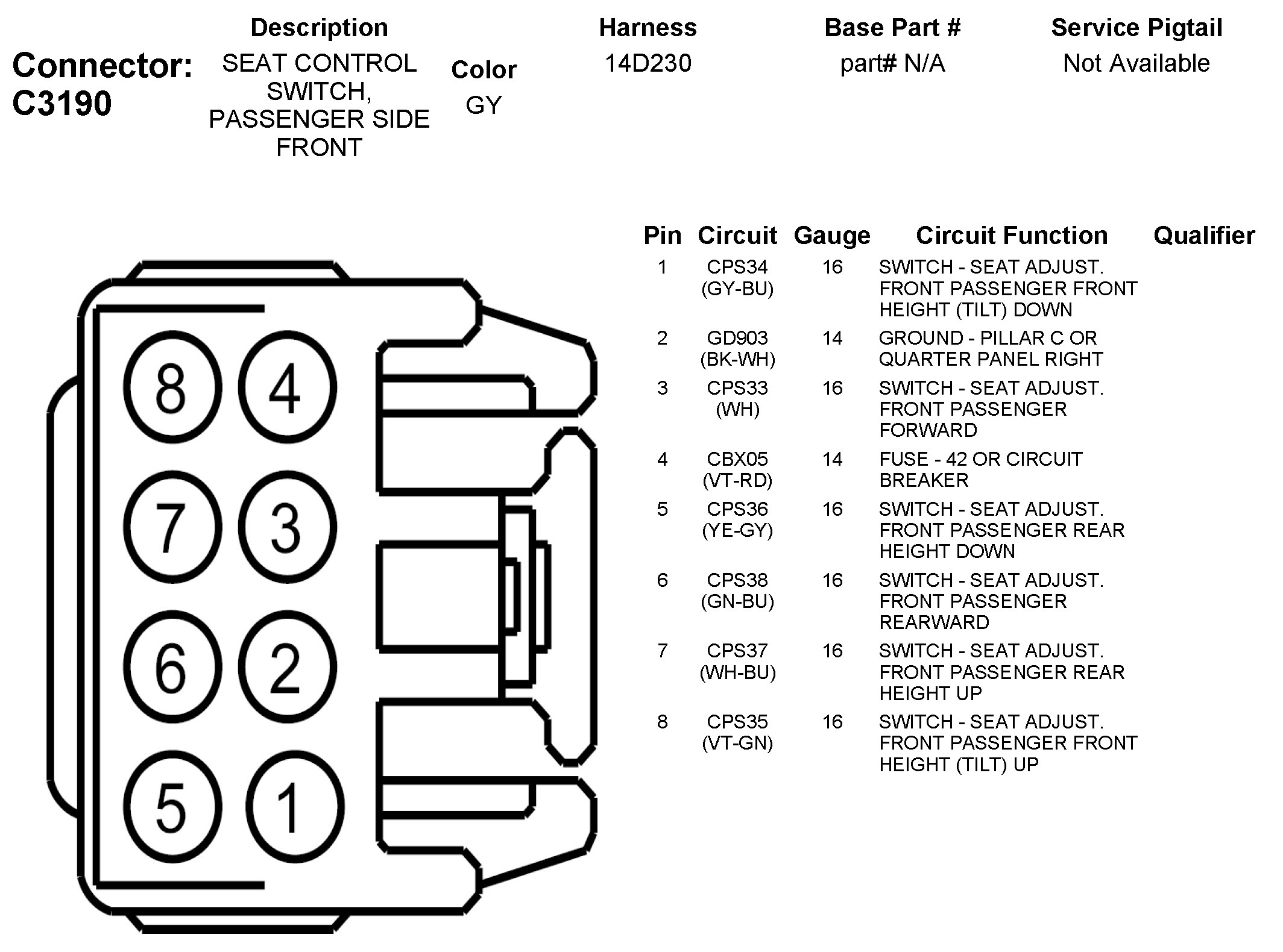 C3190 Seat Control Switch, Passenger Side Front