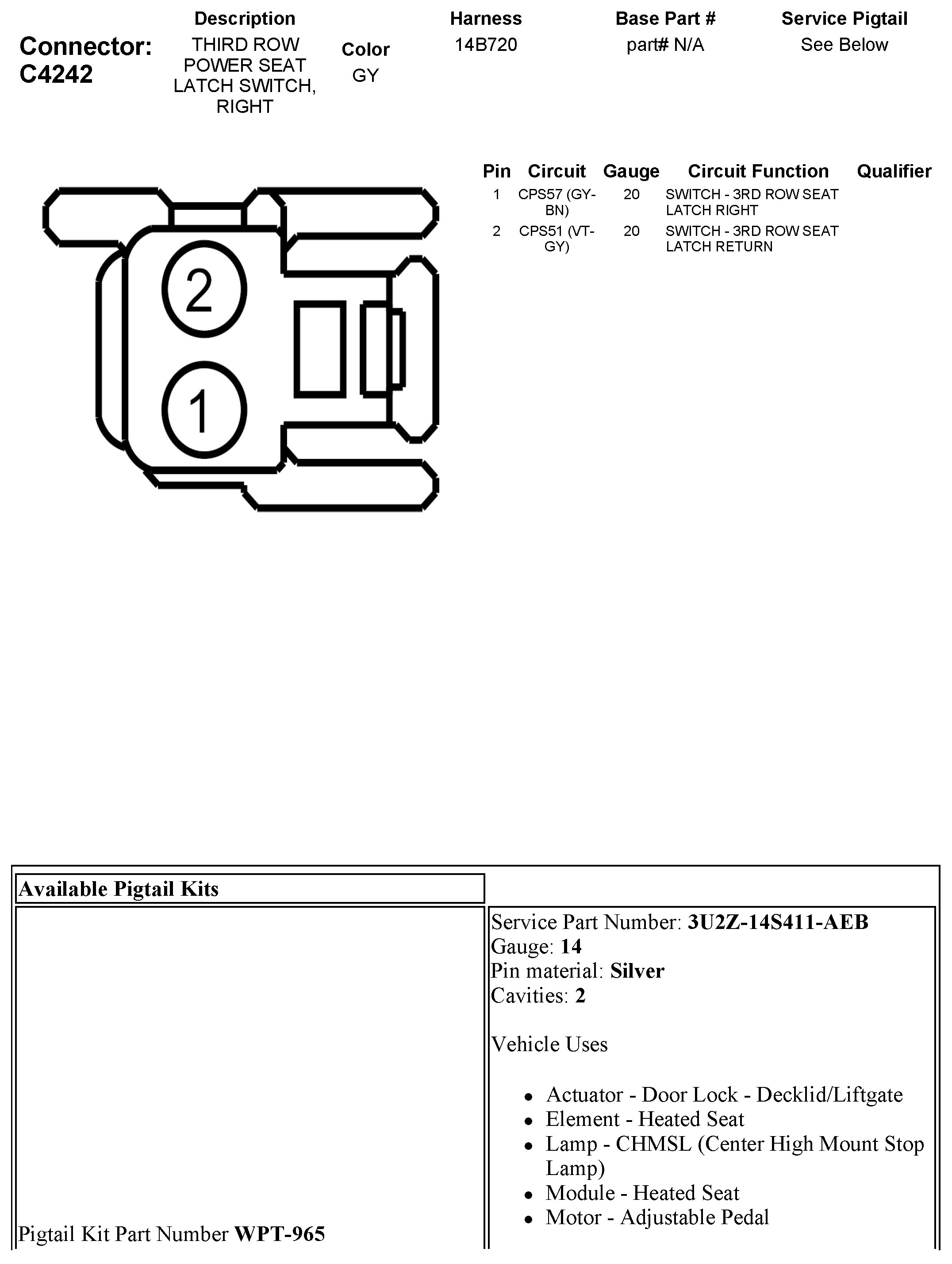 C4242 Third Row Power Seat Latch Switch, Right