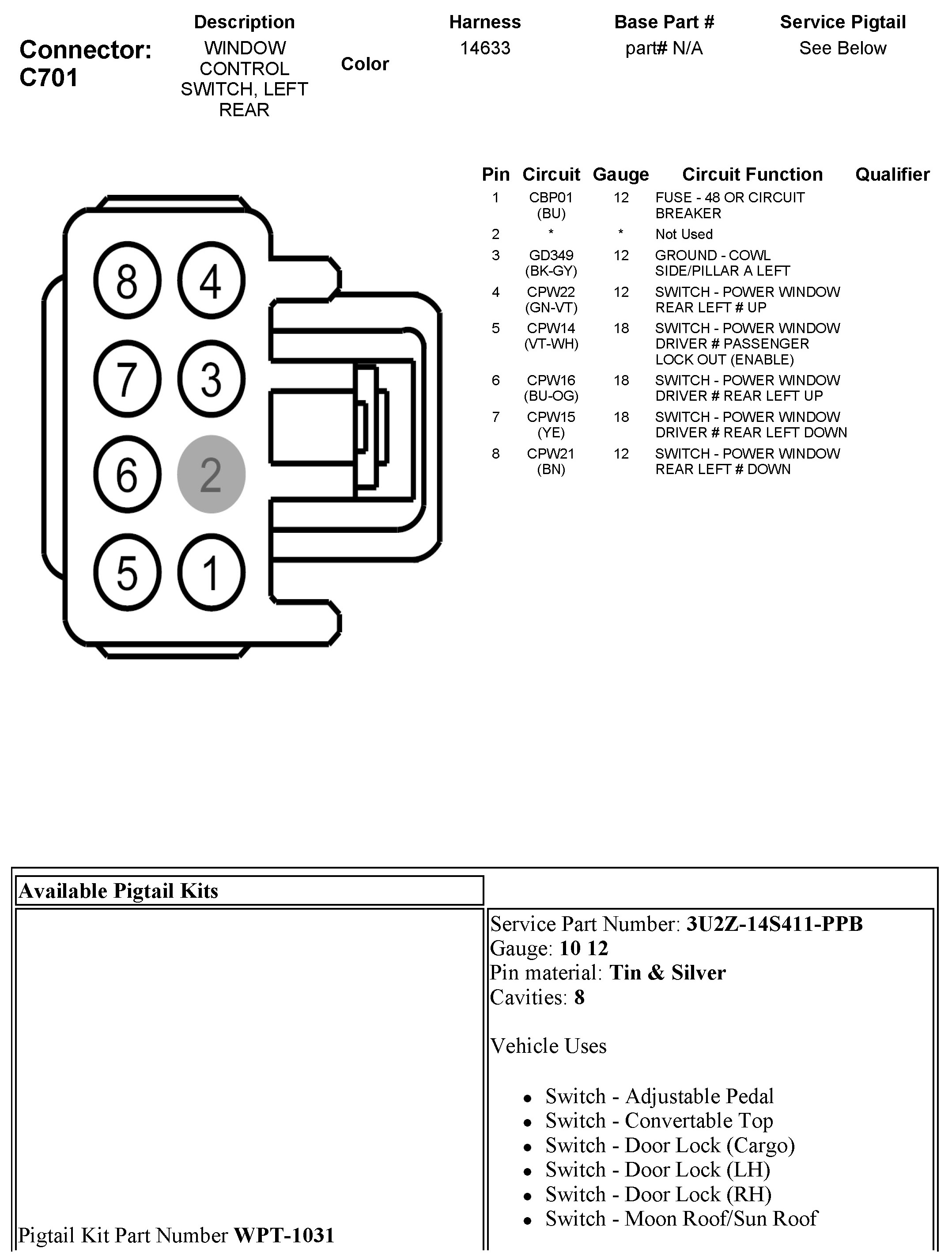 C701 Window Control Switch, Left Rear