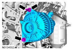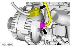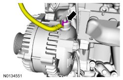 9. Disconnect the generator electrical connector and position the generator B+ cable cover aside.
