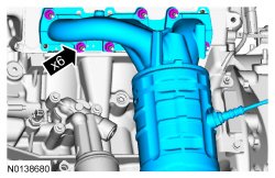 - Stage 2: Install the 3 new upper LH (Left Hand) catalytic converter manifold-to-cylinder head nuts and tighten to 25 Nm (18 lb-ft).