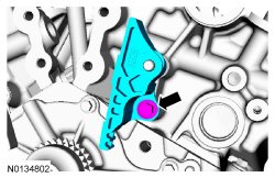 22. NOTICE: Do not use power tools to remove the bolt or damage to the LH (Left Hand) primary timing chain guide may occur.