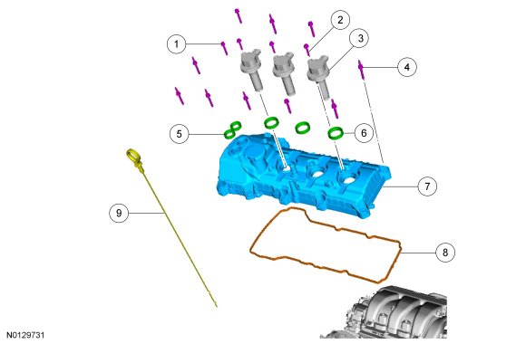 NOTICE: If the VCT (Variable Camshaft Timing) solenoid seal sticks to the VCT (Variable Camshaft Timing) oil control solenoid, then carefully wiggle the valve cover until the bond breaks free.