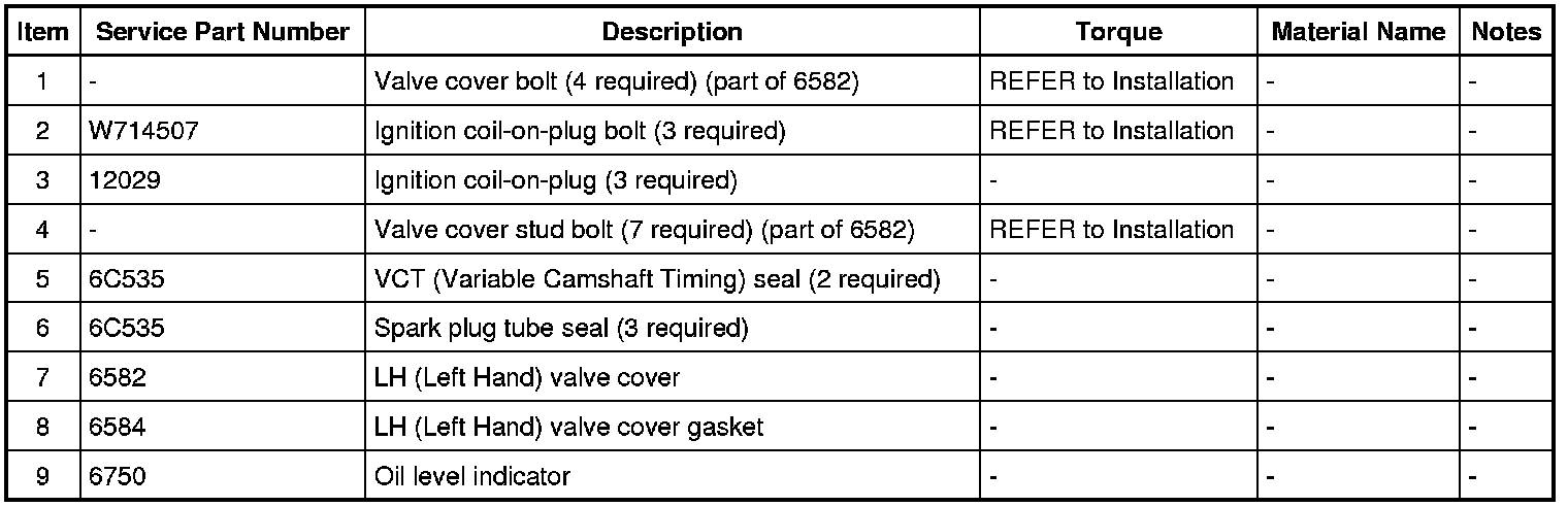 Apply an 8 mm (0.315 in) bead of Motorcraft(R) High Performance Engine RTV Silicone to the engine front cover-to- LH (Left Hand) cylinder head joints.