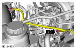 - Disconnect the 2 VCT (Variable Camshaft Timing) oil control solenoid electrical connectors.