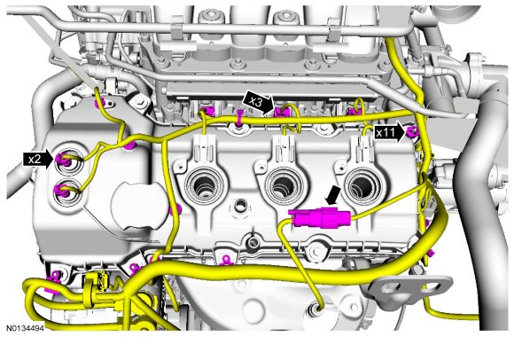 5. Remove the engine wiring harness from the LH valve cover.