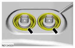 7. Inspect the 2 VCT (Variable Camshaft Timing) solenoid seals. Remove any damaged seals.